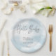 Papel de plantilla de ducha de bebé en la nube, vajilla personalizada. Nubes de color gris pastel de color gris escritura casual moderna ducha de bebé con placas personalizadas de decoración de mesa.