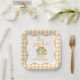 Nuestros platos de cumpleaños Little Cutie naranja con yeso naranja.