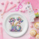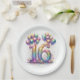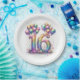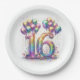 Plato De Papel Número Purpurinoso 16 con globos y confetti