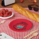 ¿Cómo puedes decir No en cualquier idioma a otro delicioso pastel de menta durante la temporada festiva? Diseño de placas de papel rojo de la tienda Niche y That.