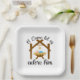Niño Jesús en el pesebre con el texto "O Come Let Us Adore Him".