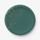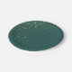 Se muestra este plato de papel impreso de estrellas pequeñas doradas en un color personalizado del Mar Esmeralda. Las estrellas no son oro metálico ni oro fino, simplemente un color dorado. Estrellas en 3/4 del plato. Se muestra el tamaño de 9". Personalizar este artículo o compra tal cual.