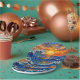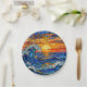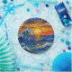 A paper plates with an illustration of a stained glass mosaic ocean waves and sunset illustration. These are perfect for a beach themed coastal birthday party.