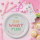 Hagan que sus Navidades fiestas sean inolvidables con estos modernos platos de papel tipográfico Oh Qué Divertido. Presenta una acogedora textura de suéter y divertidos textos coloridos. Puede personalizar este diseño haciendo clic en "Personalizar esta plantilla" o si desea cambiar el tipo de letra, los colores de fondo o organizar los elementos de diseño de una manera diferente, puede hacer clic en "Editar usando la herramienta de diseño".
