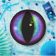 Placa de papel divertida con un gran ojo azul y púrpura con pupila resbalada.