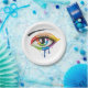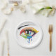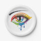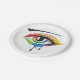 Un ojo pintado artístico y colorido. Este diseño parece realmente efectivo en estas placas de papel