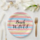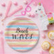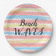Plato De Papel Olas de Playa Amarillo Rosa Azul Acuarela