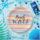 Olas de Playa está escrito en divertida letra negra. Colores pastel soleados en rayas de acuarela rosa coral, azul cielo, amarillo sobre fondo blanco. Diseño de Arte Original © TamiraZDesigns