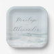 Este plato de boda presenta una escena oceánica serena con olas suaves, creando una atmósfera calmante y romántica. La paleta de colores está dominada por azules suaves y blancos, lo que realza el ambiente tranquilo del diseño. La tipografía de letra cursiva elegante añade sofisticación, mientras que el diseño minimalista se centra en la simplicidad y la elegancia. Perfecto para bodas o celebraciones especiales, este plato combina la belleza de la naturaleza con caligrafía elegante para evocar sentimientos de paz y amor.