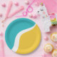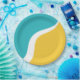 Plato De Papel Ondas simples 3 - Turquesa y Amarilla