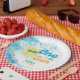 Make waves at your little one’s big day with these surf-inspired 1st birthday paper plates! Designed with a watercolor ocean wave, a cool sunshine rocking shades, and the sweet “one in the sun” phrase, these plates bring all the beachy, board-riding vibes. The cheerful mix of turquoise, coral orange, and sunny yellow gives serious summer energy—perfect for a surf-themed celebration. Whether you're partying poolside, seaside, or just in your own backyard, these plates are sure to bring the sunshine 🌊🏄♂️☀️