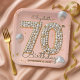 Una obra maestra para un hito. Este plato de cumpleaños "70" presenta un mosaico de elegantes perlas doradas y blancas, ambientado con un suave fondo rosa rubor con globos flotantes y confeti. La pieza central perfecta para una sofisticada celebración de cumpleaños número 70.