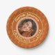 Elevate your graduation celebration with elegant orange photo paper plates in warm orange, soft peach, and cream tones. The design features your graduate's photo in a sophisticated arched frame alongside their name, school, and class year. Thoughtful details create an elevated guest experience from first course to dessert.