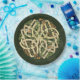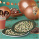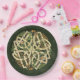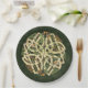 En un fondo oscuro del damasco del Forest Green la versión digital de un símbolo céltico antiguo: Un ornamento circular hecho de serpientes entrelazó en los nudos célticos tradicionales típicos. Los esquemas del ornamento parecen la ventaja, el interior tectured en amarillo claro y verde claro.
