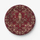 Plato De Papel Ornamento rojo y oro de flores de lis