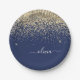 Platos de fiesta de monograma y nombre inicial con purpurina brillante de oro y azul marino. Esto hace el regalo perfecto de cumpleaños número 16, boda, despedida de soltera, aniversario, baby shower o fiesta de soltera para alguien que ama el glamour de lujo y los estilos chic.