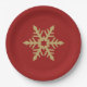 Plato De Papel Oro del diseño del copo de nieve en rojo
