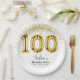 Plato De Papel oro purpurina, brillo dorado 100 cumpleaños