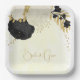 Flores negras y blancas románticas con hojas de oro placa de papel boda botánico.