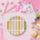 Clásica, a rayas de moda, en tonos naranja, rosa, verde y tostado.