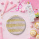 Plato De Papel Oro y confeti de Bokeh de las rayas del rosa