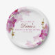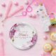 Placas Tropicales De Papel Orquídea. Se trata de un diseño divertido y festivo creado con orquídeas moradas y magenta sobre un fondo blanco que puede cambiarse a cualquier color que prefiera.