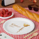 Este diseño fue inspirado por un solo globo de oro suave con forma de pequeño osito, flotando suavemente a través de un espacio blanco limpio. La disposición simple y los tonos cálidos crean un aspecto moderno y elegante, lo que hace que estos platos sean un detalle encantador para una mesa de baby shower neutral.