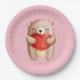 Plato De Papel Oso de peluche con un corazón rojo
