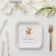 Plato De Papel Oso de peluche de gingham marrón, papel de baby sh
