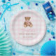 Platos de papel de cumpleaños primero de Oso de peluche de gingham rosa
