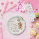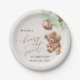 Plato De Papel Oso de peluche, globos verdes, primer cumpleaños