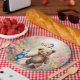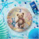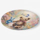 Plato De Papel Oso de peluche y conejo en un jardín pastel