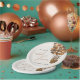 Añada un toque personal a la celebración de la ducha de bebé con estos artículos fiestas de diseño e inolvidables. El diseño presenta un oso bebé con globos marrones sobre fondo beige.