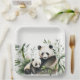 Acuarela lindo oso panda en hojas de bambú con un cachorro sobre un fondo blanco.