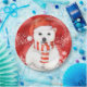 Divertido y festivo, este diseño presenta un oso polar con un alegre Sombrero Santa rojo brillante y una bufanda rayada blanca y roja, en un brillante fondo rojo con un mágico torbellino de copos de nieve a su alrededor y copos de nieve cayendo detrás.