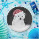 Oso polar con gorra de Santa Claus con copos de nieve sobre fondo negro. Se puede cambiar el color de fondo. El texto se puede editar o eliminar.