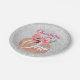 Platos de papel de primer cumpleaños de otoño con un gran calabaza floral de naranja de melocotón y fondo brillante de purpurina plateado. La palabra "One" está en un guión grande y elegante en blanco, y su nombre personalizado está en un guión rosado en bonito. Puede añadir fácilmente el nombre de su elección y cambiar el color y el tipo de letra utilizando la opción personalizar.