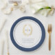 Plato De Papel Oval wreath art hojas monograma azul oro