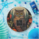 Paper plates with a cool looking owl with a piercing stare. A full moon in the back with a garden of red flowers.