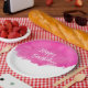 Felices planchas de papel de cumpleaños. Feliz cumpleaños escrito con una moderna letra escrita a mano. Un diseño artístico creativo con una mancha de pintura de color rosa claro.