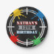 Levante la mesa de su fiesta con este plato personalizado con temática de bola de pintura con oscilación de pintura, una silueta de tirador de bola blanca y texto personalizado con el nombre y la edad de su hijo. Perfecto para niños, adolescentes y niños, agrega un toque divertido y lleno de acción a cualquier celebración de cumpleaños de paintball. Ideal para comidas, bocadillos o pasteles, porque incluso los platos fiestas deberían estar bien.