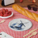 Plato De Papel Paisaje de estilo Delft azul y blanco con molino d