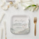 Estos elegantes platos de papel presentan un sereno paisaje de acuarela con tonos suaves y apagados de montañas azul-gris y azul verdoso en el fondo, complementados con marrones terrosos y delicadas flores rosadas en primer plano. El diseño captura una atmósfera romántica y soñadora, perfecta para crear un entorno tranquilo y sofisticado. Con tipografía elegante en el centro, estos platos son ideales para bodas u ocasiones especiales, ofreciendo opciones personalizables para agregar toques personales mientras mantienen una estética acogedora y refinada.