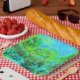 Plato De Papel Paisaje Trippy Lime Green y Blue Garden