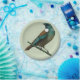 Un ilustracion pintado de un pájaro neozelandés. Esto es un tui. Los tui son pájaros cantores con un tinglar blanco de plumas debajo de sus cabezas, de ahí su nombre inglés, el pájaro Pason. El ave neozelandesa está colgada en una rama y es dibujada en un estilo angustiado.