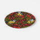 Plato De Papel Pájaros y caderas de rosa de perro, verdes y rojas