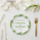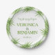 Estas placas de papel son perfectas para cualquier pareja que planee una celebración romántica de bodas en la playa de destino. El diseño se basa en unas hojas de palmera verdes tropicales de moda sobre un sencillo fondo blanco y limpio con un borde y una redacción coordinados. El diseño sencillo puede ser personalizado para su evento especial y será el accesorio perfecto para cualquier fiesta con temática playera, incluyendo duchas de novias, compromisos, duchas de bodas, fiestas de cumpleaños y mucho, mucho más.