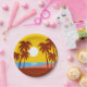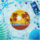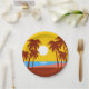 Atardecer de isla tropical con palmera de estilo hawaiano.