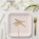 Plato De Papel Palm Tree Tropical Purpurina Oro