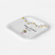 Platos de papel Tropical Beach Birthday party, con elegantes lámparas de cuerda de palmeras dispuestas sobre un fondo blanco. Con letras de tipografía de personalizable, añades tu propia información. Una glamurosa adición a la mesa de cena inspirada en la playa.